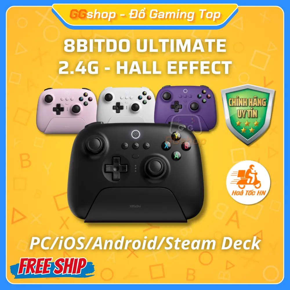 – Tay cầm 8BitDo Ultimate 2.4G Wireless Hall Effect kèm Dock sạc chơi Game đa nền tảng